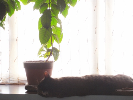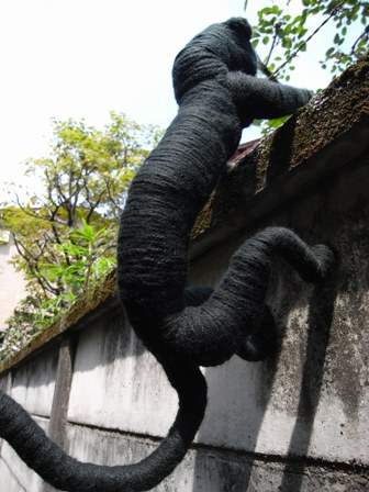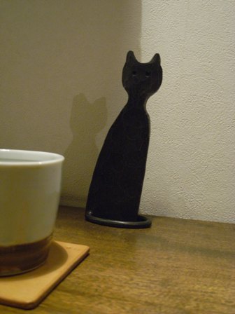鉄ネコを持ってきてくださいました。 テーブルにちょこんと座っております。
