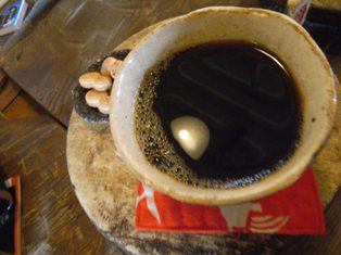 お家に帰って、いただいたコーヒー豆を、軽井沢で奥様から買った器で飲み干す。