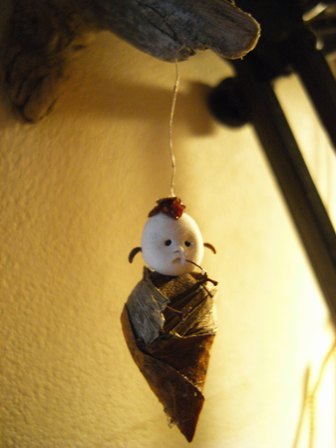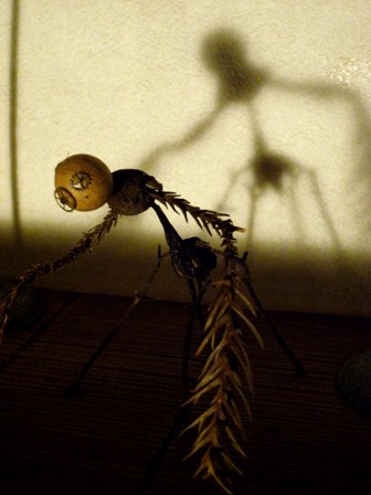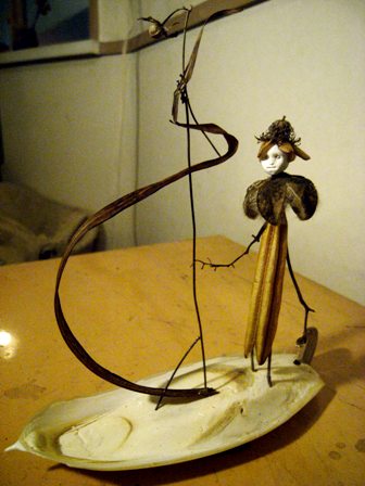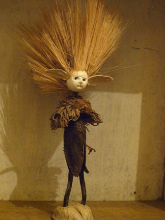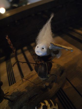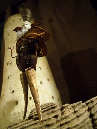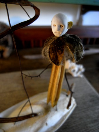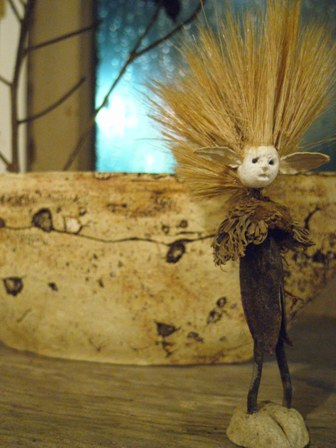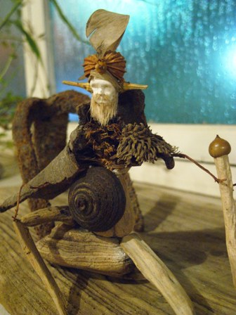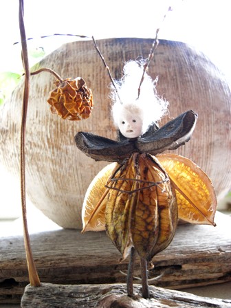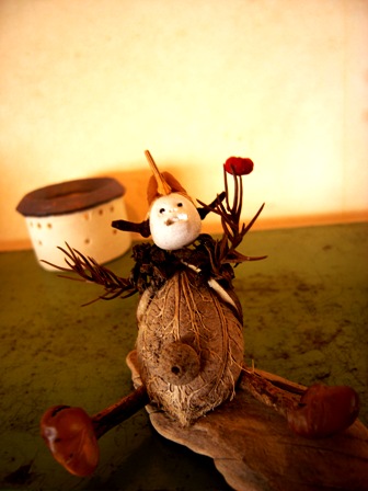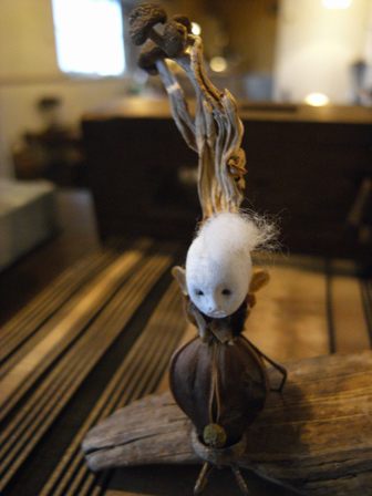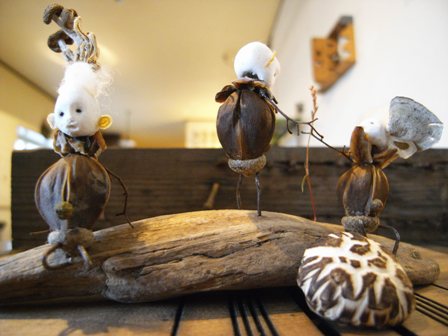 多摩川で拾った木ノ実で作った人形たちを シーファンの土と共に。